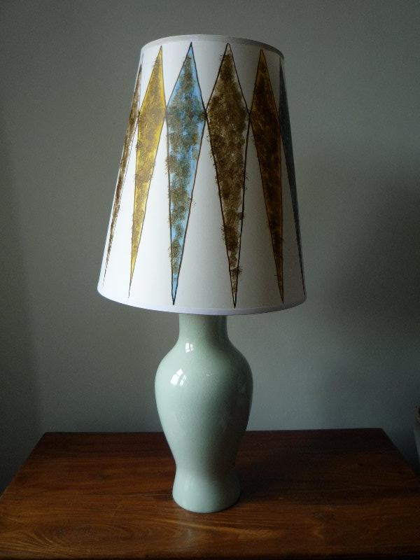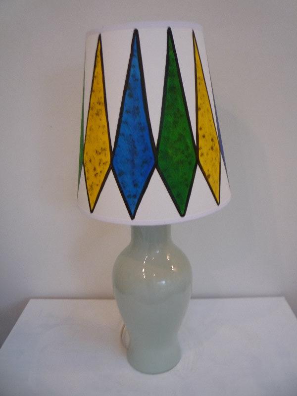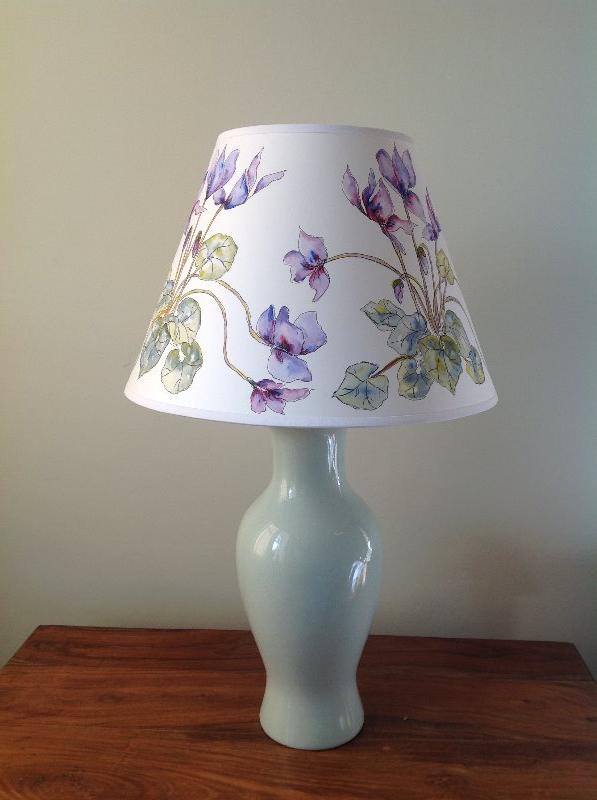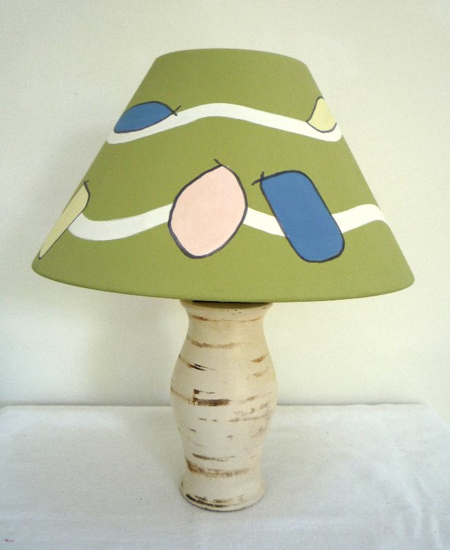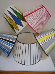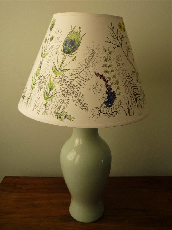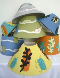 Over the last few years I have been decorating lampshades in a range of shapes, sizes and designs. This is something which is proving increasingly successful and which I love doing. I buy the plain lampshades mainly from a supplier in Dorset who does make shades of a very high quality. I then draw, ink or paint my own designs on these in lightfast colours. I also take commissions - for these I have a book of different designs, fabrics and lampshade styles e.g. empire, retro, coolie, fez etc. This way the customer can pick a design, colour, style and size of their choice..